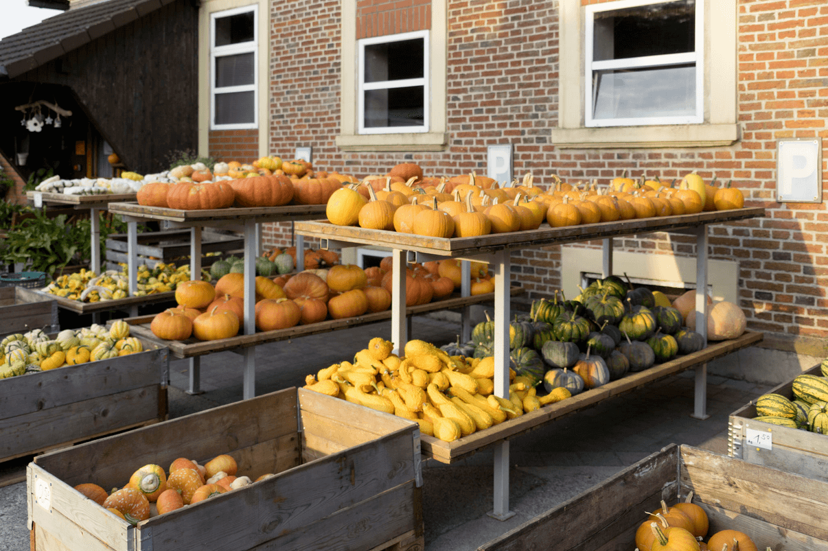 Ganzjährig bieten wir Kartoffeln an. Von April bis zum „Spargelsilvester“ am 24. Juni bekommen Sie bei uns täglich frisch gestochenen Spargel. Ab Anfang September leuchtet der Hof in den schönsten Farben des Herbstes, die Kürbiszeit beginnt.